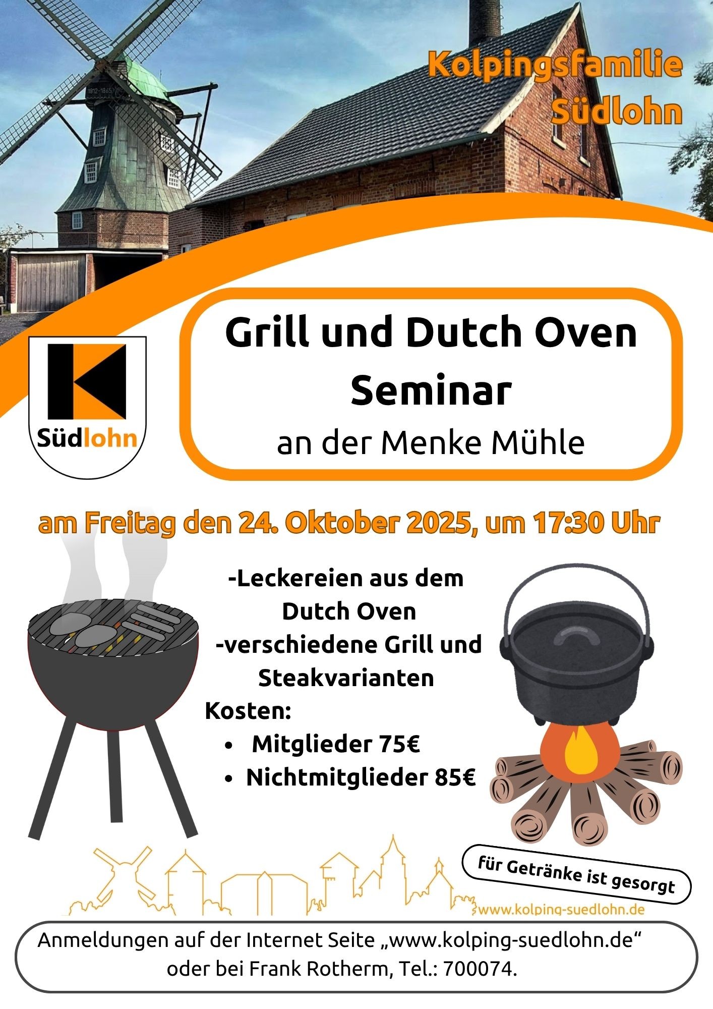 Am Freitag den 24.10.2025 fand an der Menke Mühle ein besonderes Grill- und Dutch-Oven-Seminar statt, Geleitet von Frank Hessing, mit der unterstützung von Rainer Meßling. Unter fachkundiger Anleitung drehte sich alles um das Grillen, Garen und Backen mit unterschiedlichen Methoden und Geräten.