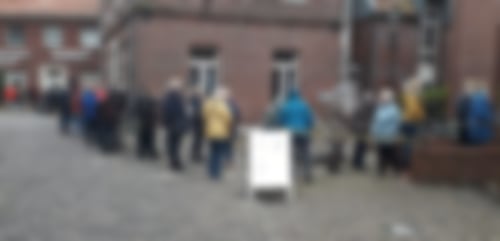 Da der Weihnachtsmarkt in diesem Jahr Pandemie bedingt ausfallen musste, bildete sich die Schlange vor dem Pfarrheim.........