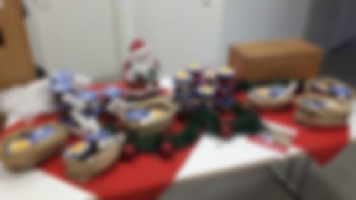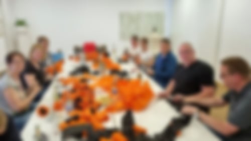 viele fleißige Hände beim Hörnchen backen für den Verkauf auf dem Weihnachtsmarkt