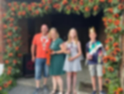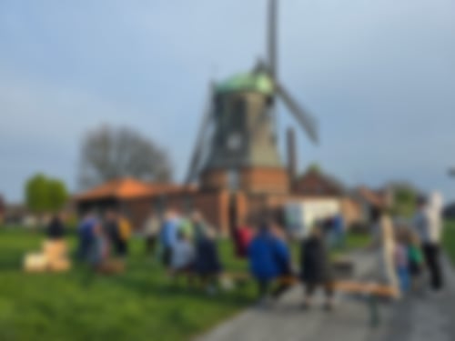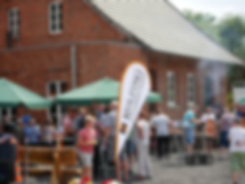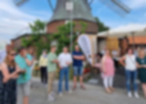 Kranz aufhängen für das Sommerfest bei der Menke Mühle
